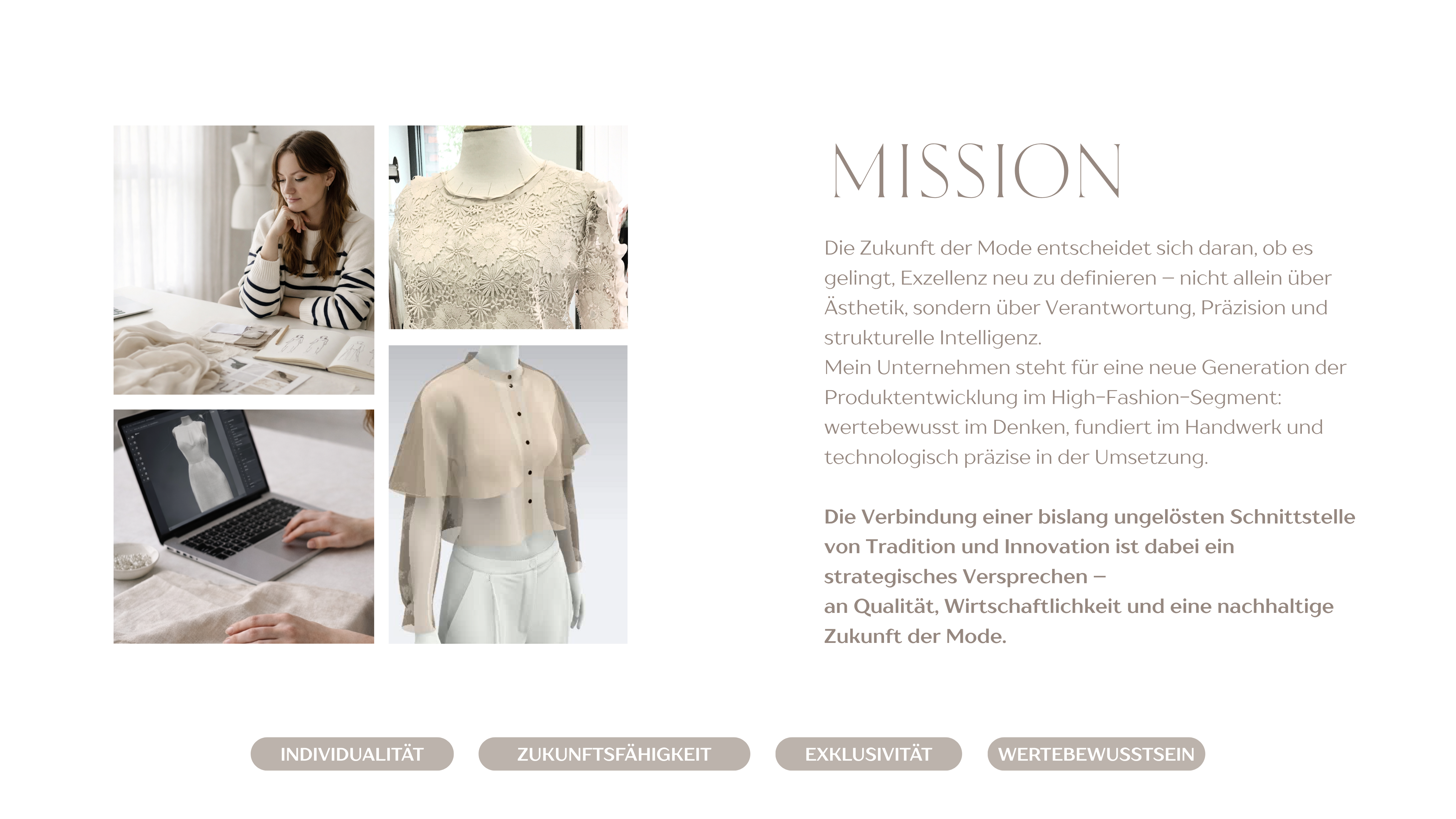 Lasst uns zusammen ich die strukturelle Grundlage für nachhaltige High Fashion entwickeln um das kulturelle Erbe der klassischen Modeentwicklung sicher und nachhaltig in die Zukunft zu bringen.